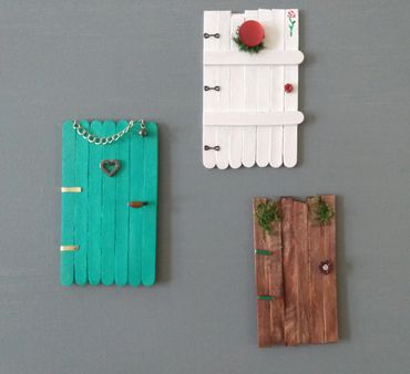 These photos are representative of the doors I make, each one handmade and unique. When I can, I use upcycled materials and things I find outside in the yard. I use a high quality waterproof wood glue to join all pieces, then give the finished doors a polyurethane clearcoat to help everything stick. They will fare better inside or in a potted plant on the patio, but are also meant to be placed 'in the wild' near trees and rock walls where the Fae are probably already living. They might become weather-worn or lose some of their pieces, but once the portal's been opened and/or recognized, their job is done anyway.